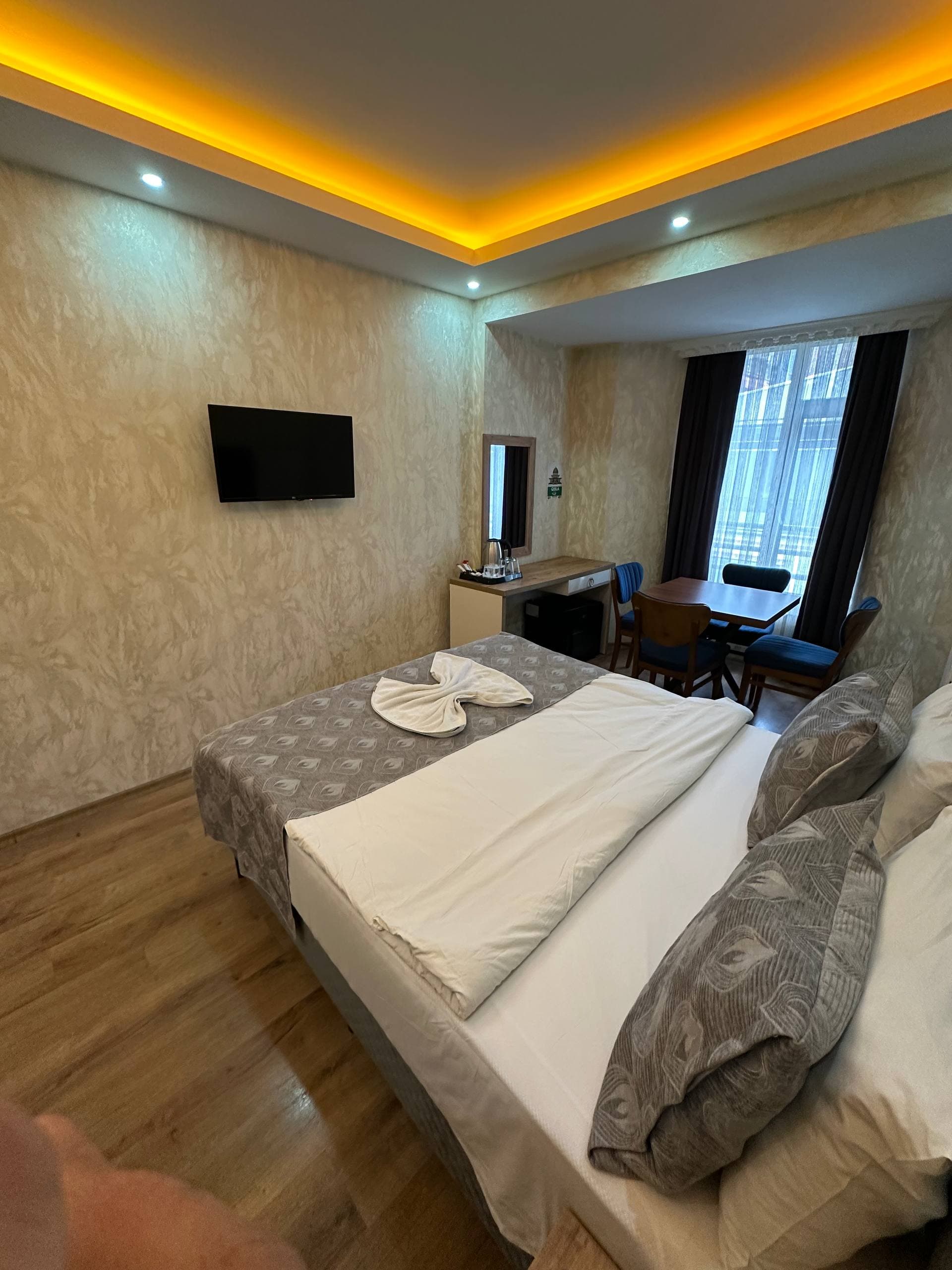Triple Oda, bir king size yatak ve bir tek kişilik yatakla üç kişilik konaklamaları rahatça karşılayan bir deluxe odadır. Özel balkon, küvet ve mini bar; kısa aile seyahatleri ya da birlikte yola çıkmış üç dost için kullanışlı bir denge kurar. Geniş kapı açıklıkları ve basamaksız duşu, hareket kabiliyeti açısından da rahat bir konaklama sağlar.